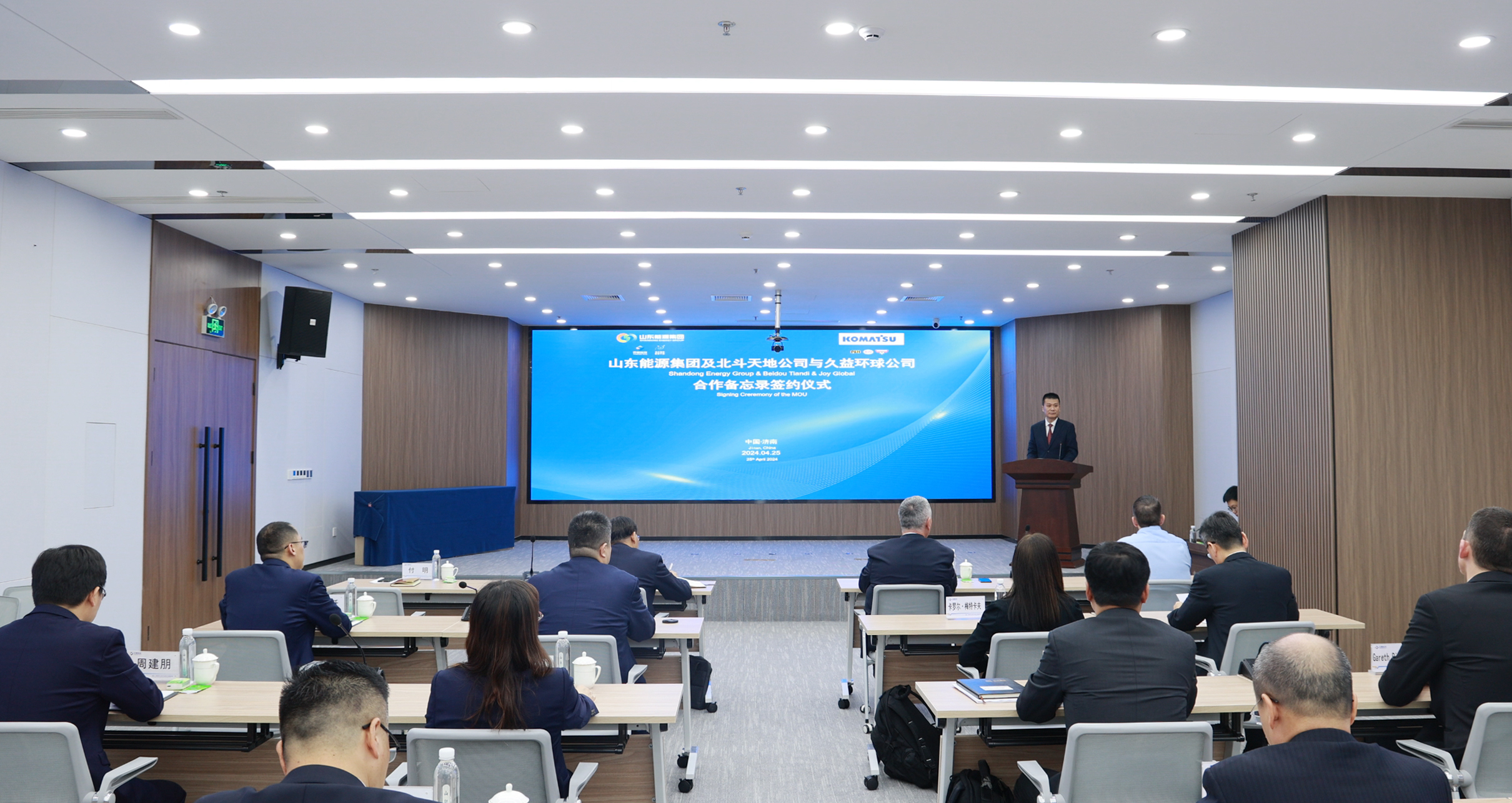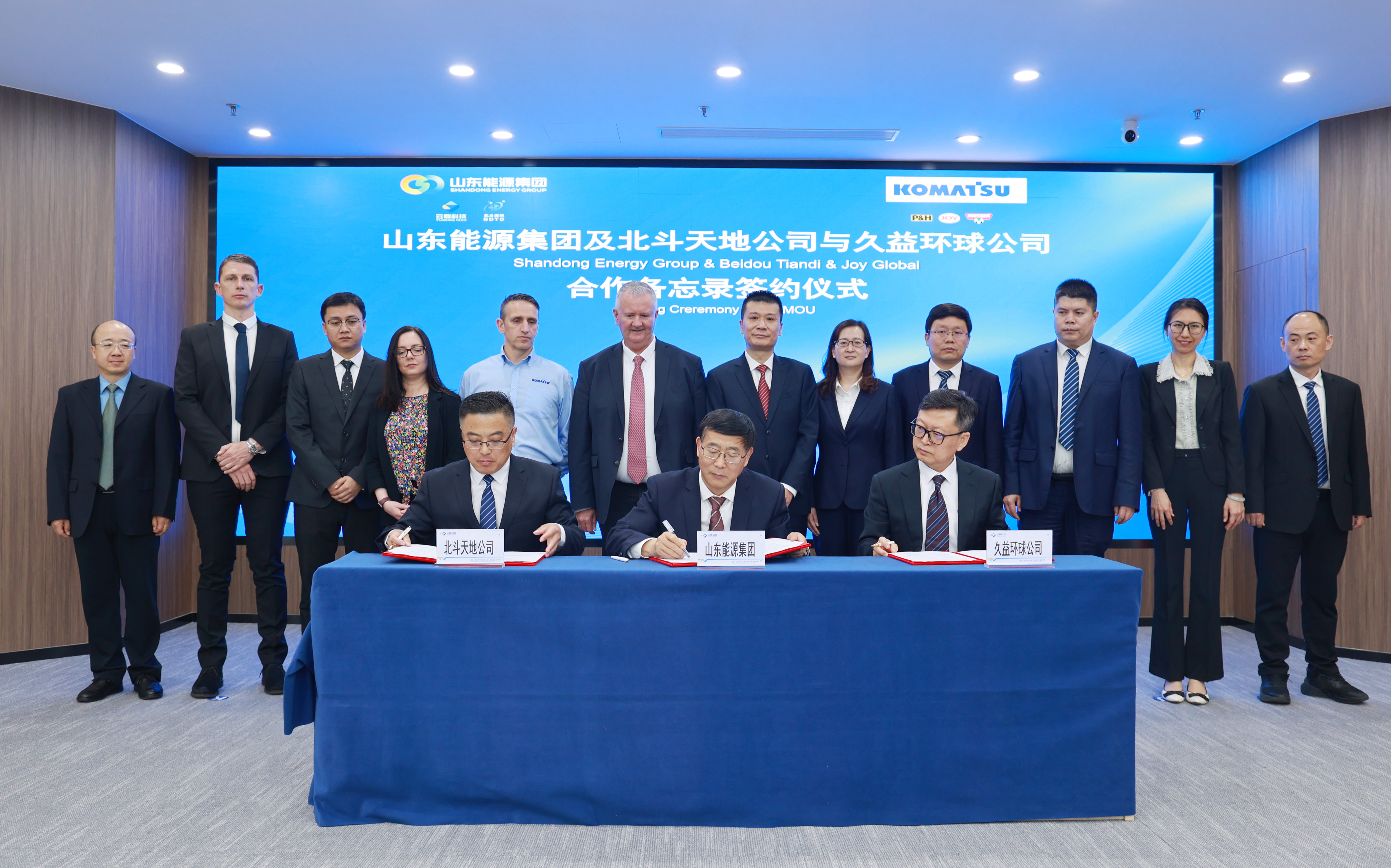 4月25日,山东能源集团及云鼎科技北斗天地公司与久益环球公司合作备忘录签约仪式在山东济南举行。山东能源集团总工程师、技术研究总院院长孙希奎,久益环球副总裁鲍勃·施瑞克,云鼎科技财务总监付明,北斗天地副总经理马延文等相关领导参加签约仪式。