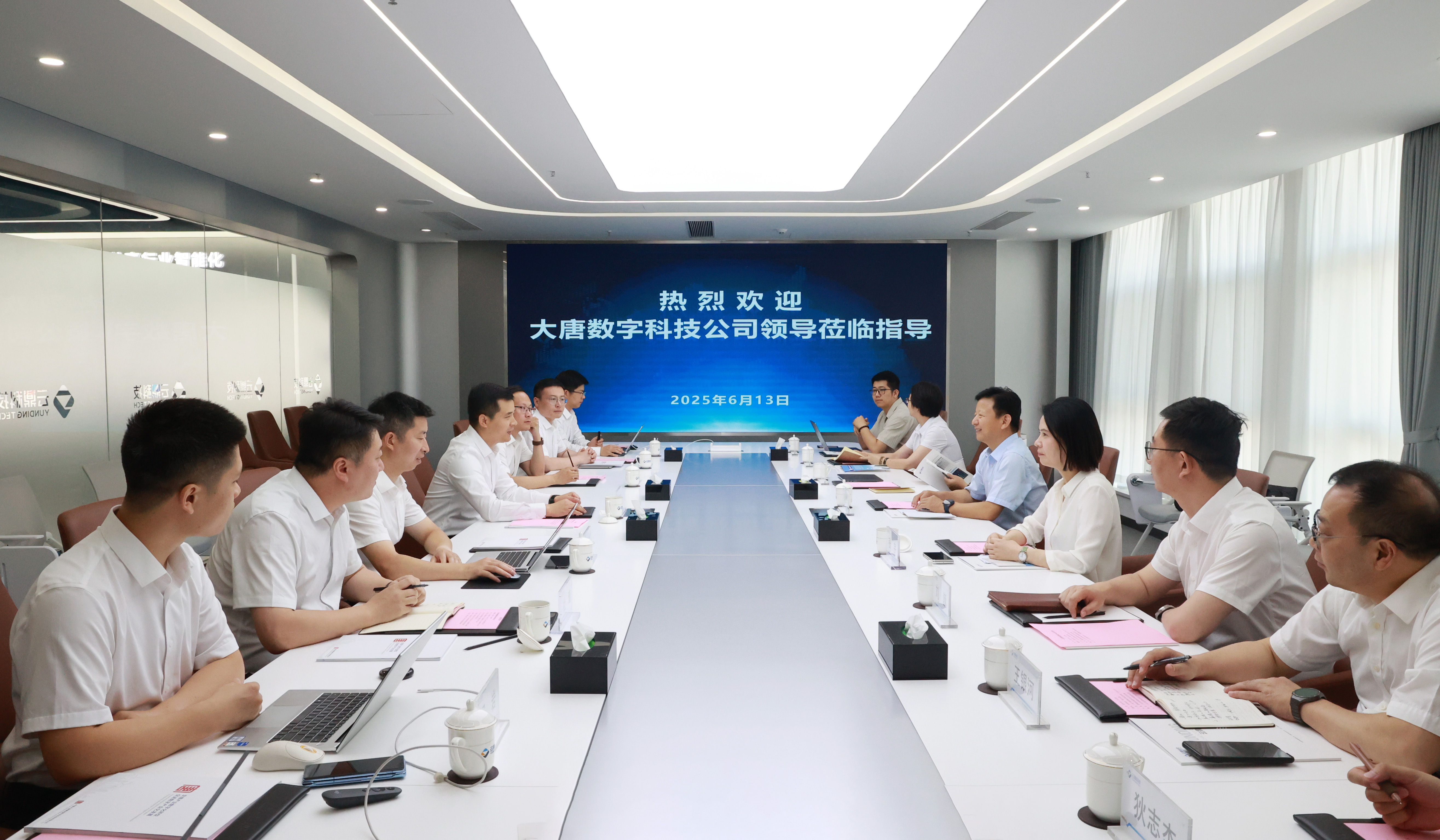 6月13日,中国大唐集团数科公司党委书记、董事长张德修一行到云鼎科技调研交流。云鼎科技党委书记、总经理刘波陪同调研,双方围绕人工智能、数据治理等领域展开深入探讨,共商能源行业科技公司合作发展新路径。