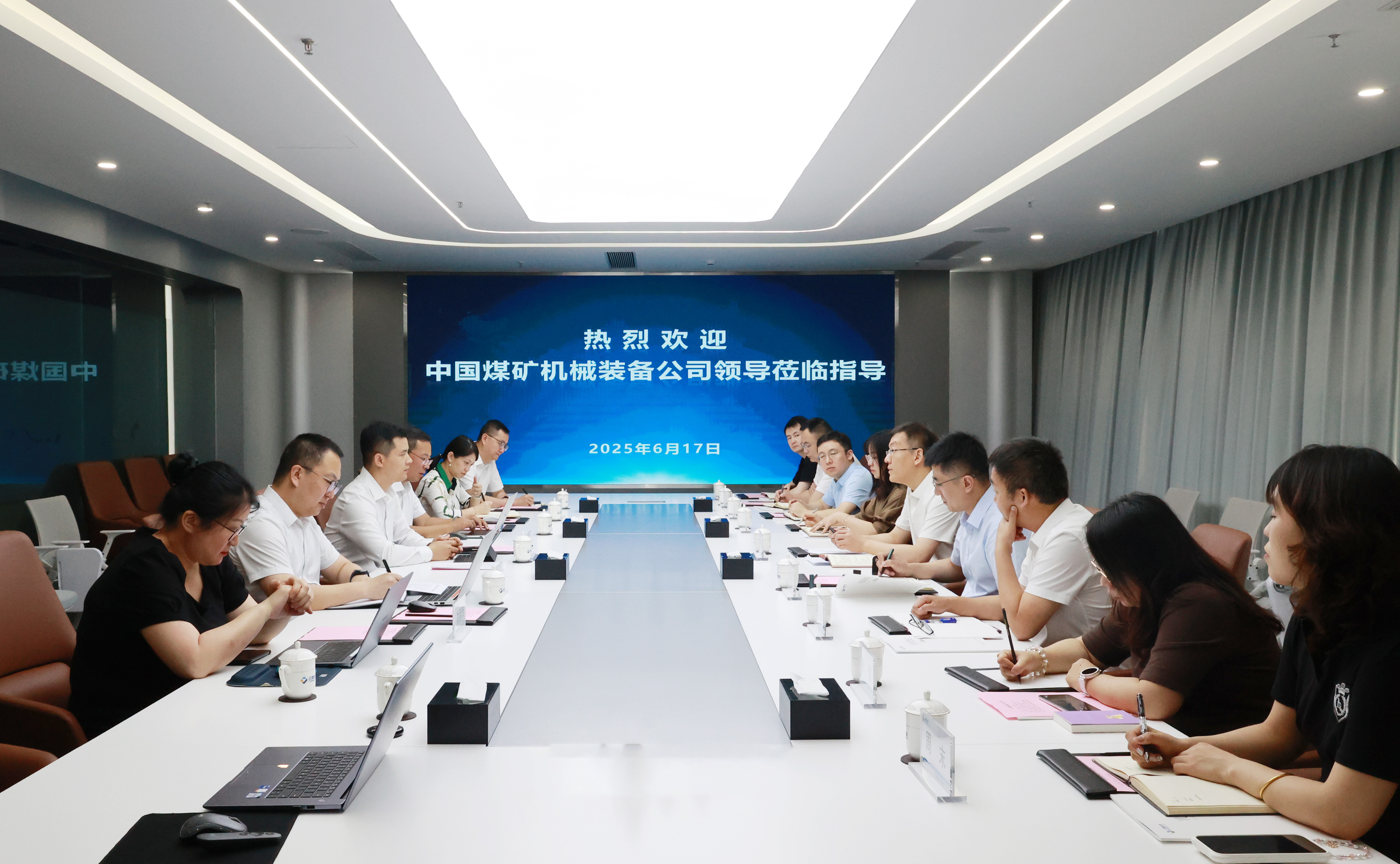 6月17日,中国煤矿机械装备公司事业部副总经理、中煤装备公司副总经理李思朋一行到云鼎科技调研交流,云鼎科技党委书记、总经理刘波陪同调研。中煤信息党委书记、董事长王喜升、中煤装备北京技术服务分公司副总经理王嘉、中煤智能科技总会计师张国峰参加座谈。