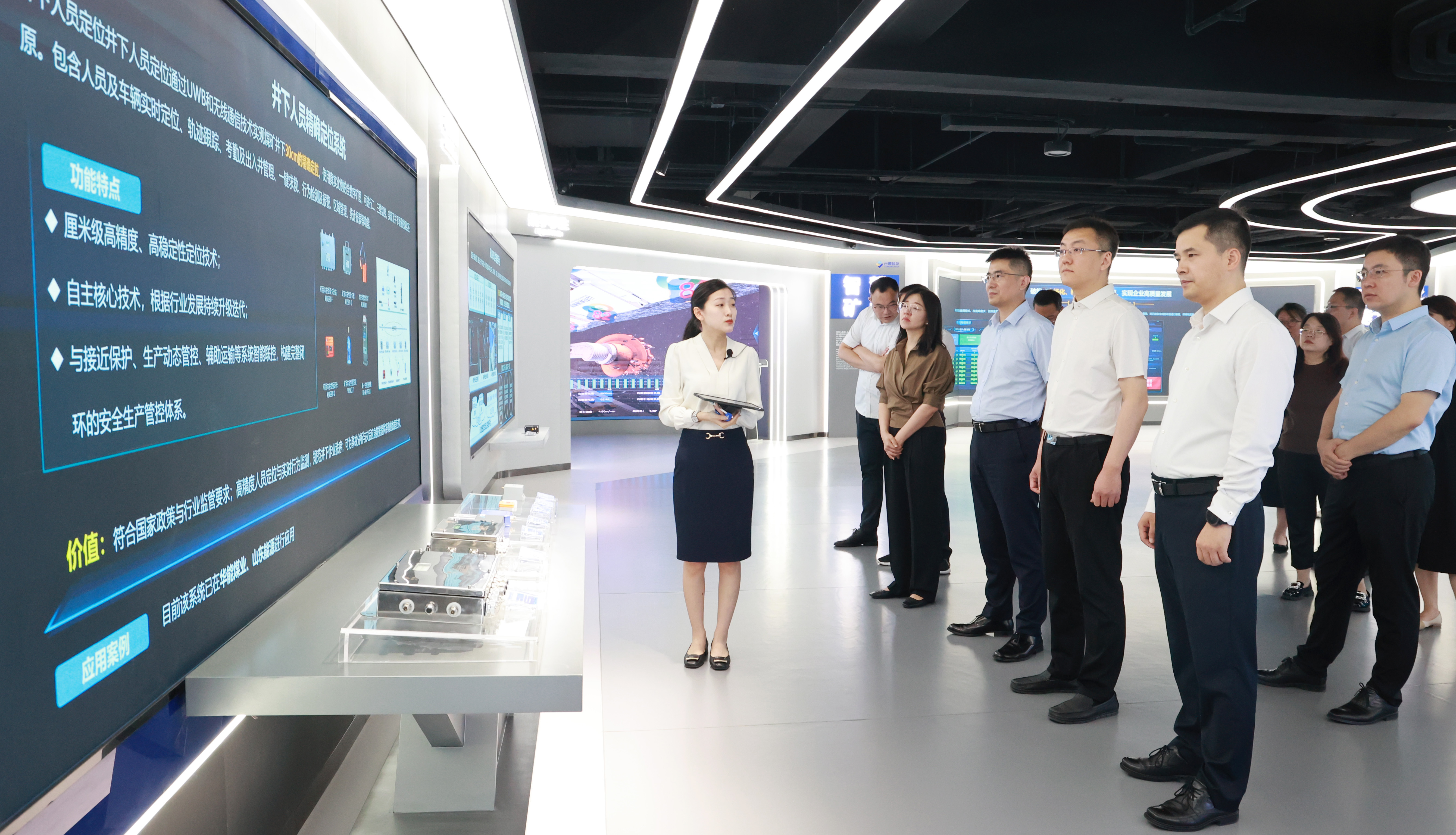 期间,李思朋一行参观了云鼎科技展厅,详细了解了企业发展情况及其在服务大型能源集团数字化能力、智慧矿山、智慧洗选、新能源化工、网络安全、人工智能等领域的优势。此次调研交流增进了彼此了解,为后续更深入的合作奠定了坚实基础。