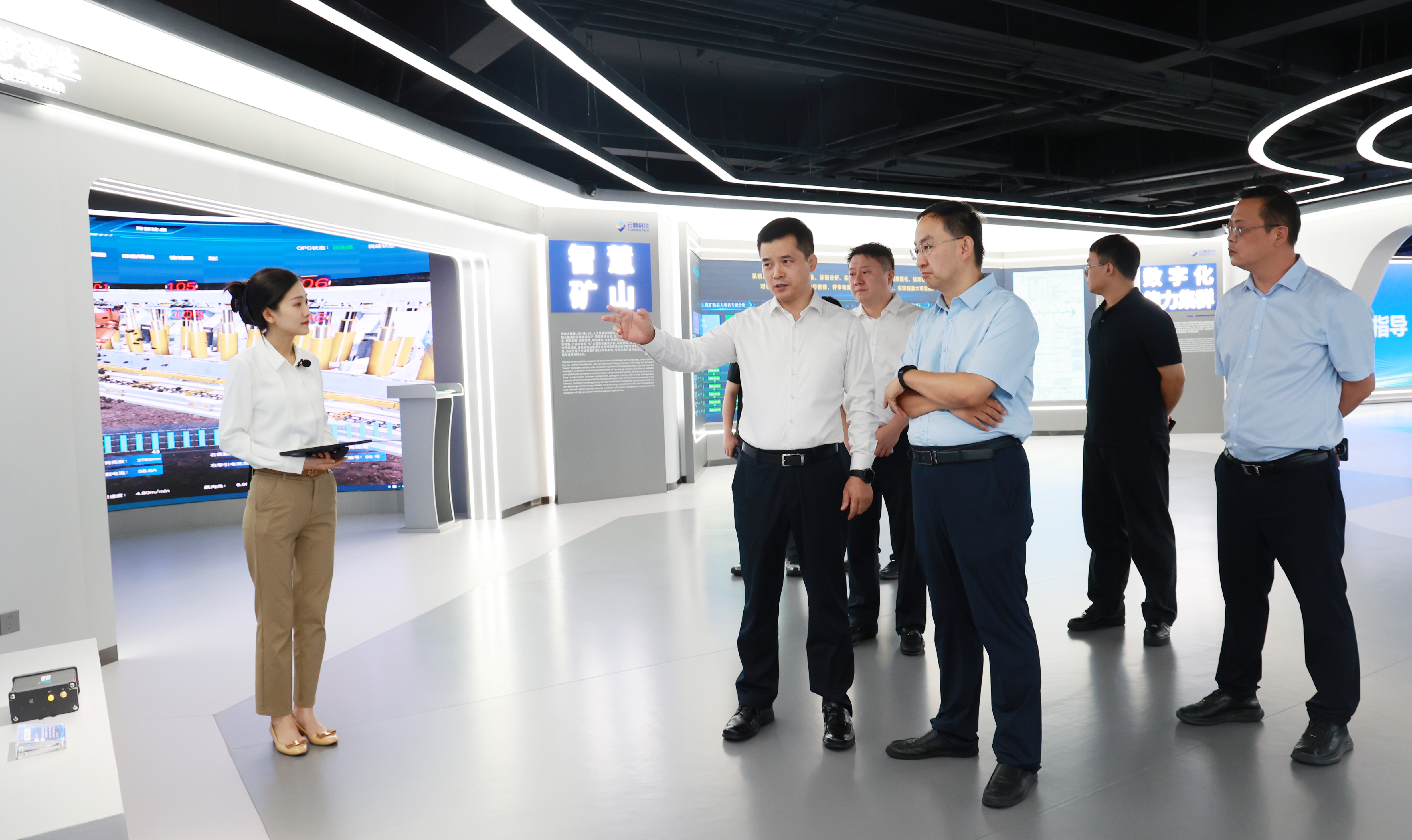 会前,贾培军一行参观了云鼎科技数智展厅,现场观摩公司在智慧矿山、智能洗选、新能源化工等领域的数字化能力矩阵建设成果,对云鼎科技在数字化领域的技术实力和创新成果表示认可。
