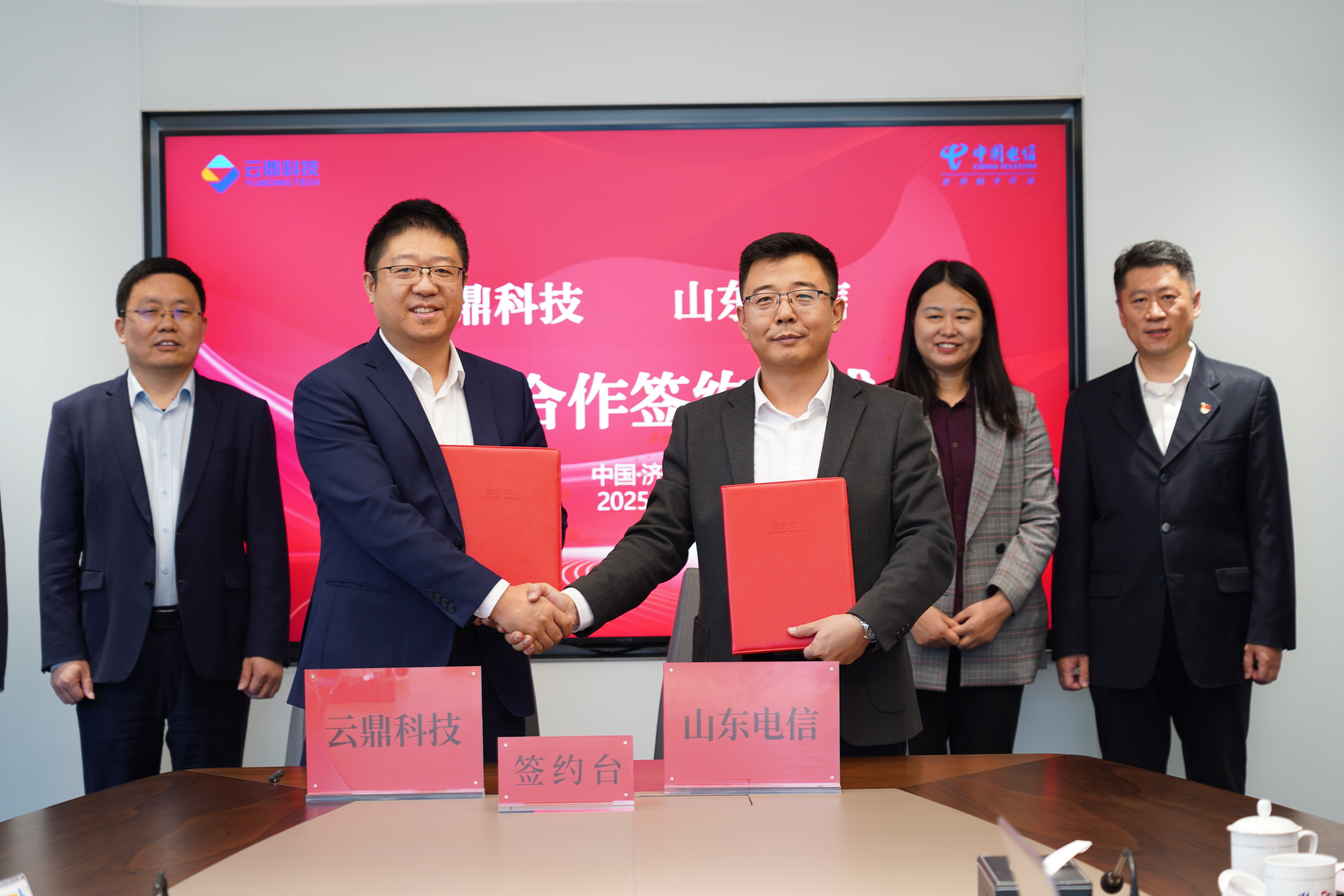 11月6日下午,云鼎科技与中国电信股份有限公司山东分公司(以下简称“山东电信”)在济南举行战略合作协议签约仪式。山东电信政企客户事业部总经理赵文芳,山东电信云中台副总经理刘磊;云鼎科技副总经理周建朋,战略技术部副部长韩磊等领导共同出席并见证这一重要时刻。山东电信工业客户部总经理赵金全,云鼎科技非煤矿山业务总监陈峰代表双方签署协议。