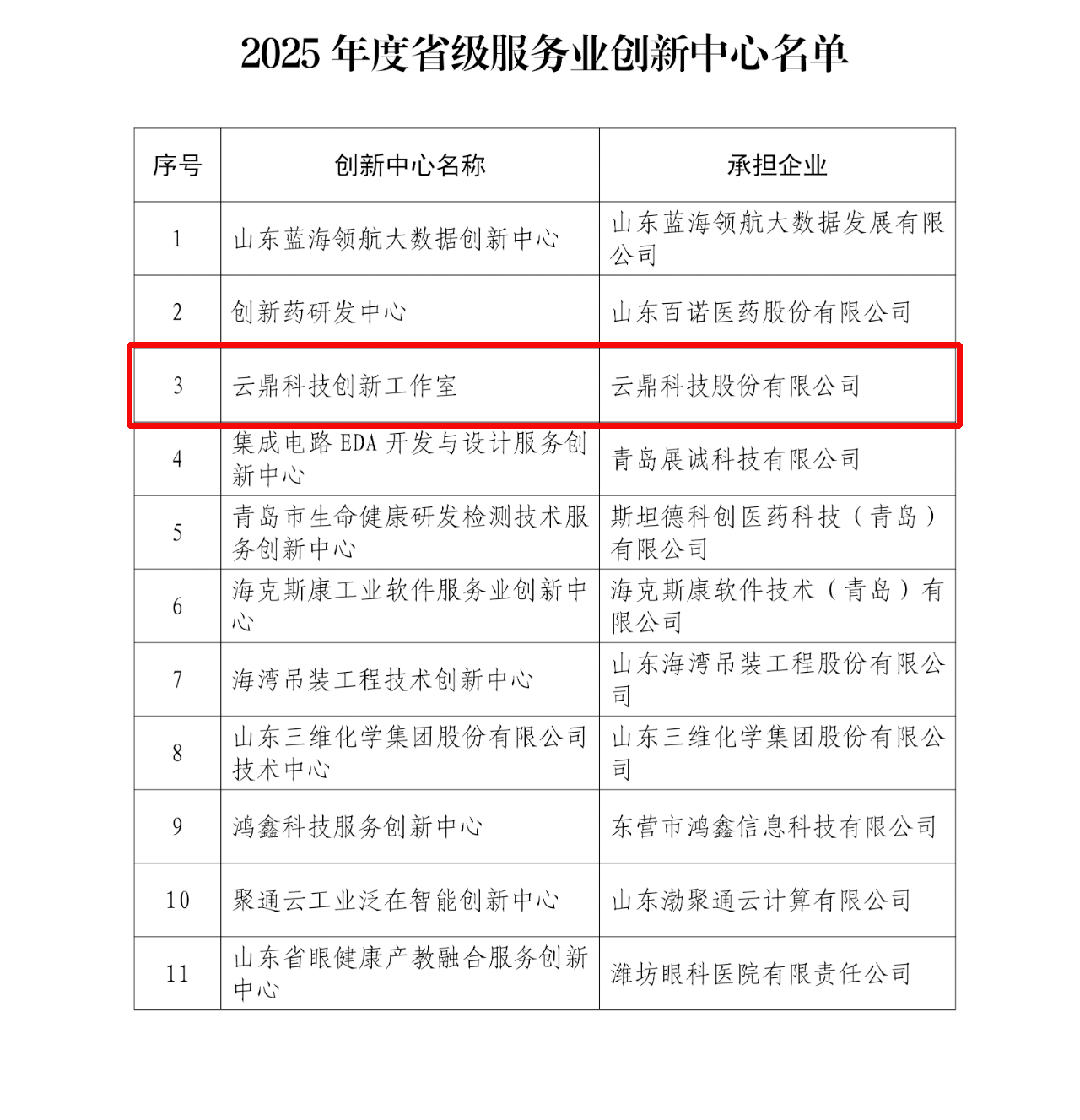 近日,山东省发展和改革委员会公布2025年度省级服务业创新中心认定名单,“云鼎科技创新工作室”成功入选,成为全省19家入选企业之一。这标志着公司在矿山智能化领域的技术积累与创新能力获得省级权威认可,为公司积极探索新业态、新模式,着力提升产业链现代化水平提供发展平台。