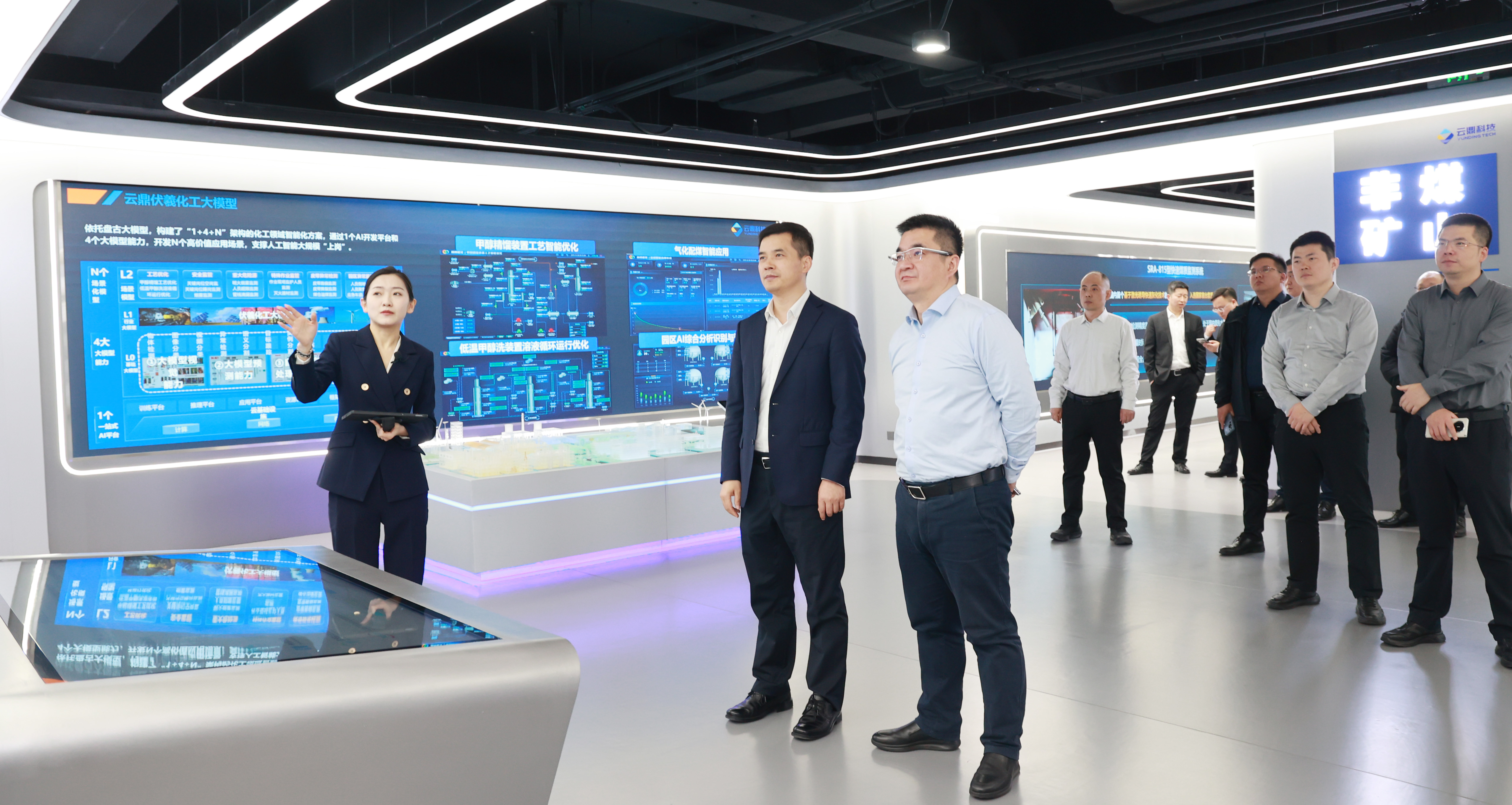 交流期间,副总经理曹怀轩详细介绍了双方合作以来的发展历程与丰硕成果。金伟锋一行参观了云鼎科技数智展厅,实地了解了公司在人工智能、智慧矿山等领域的技术成果与应用案例,并前往兴隆庄煤矿开展现场调研,直观感受人工智能技术在矿山场景的落地实效。