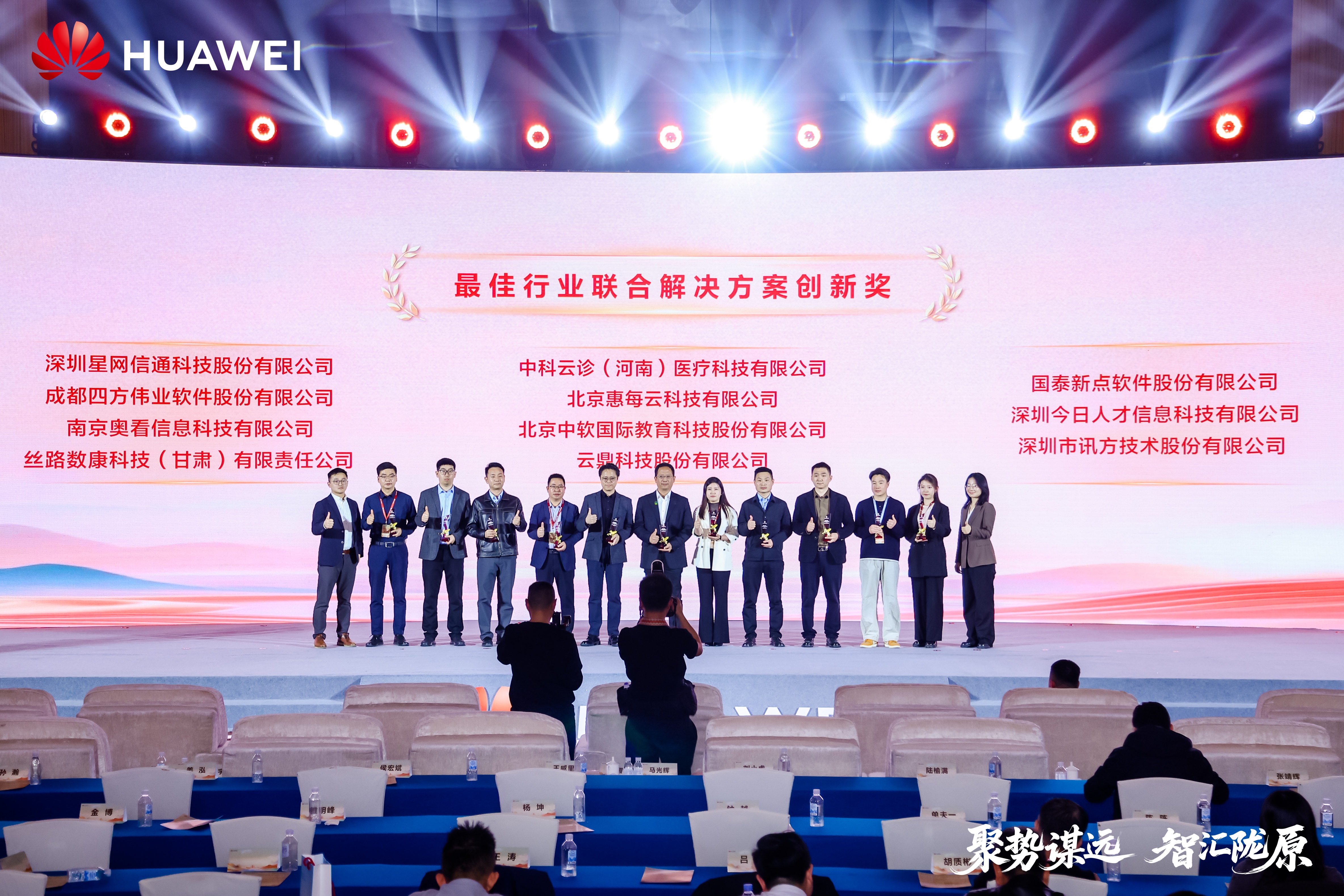 大会现场,曹怀轩作为企业代表登台,共同见证鲲鹏—昇腾甘肃行业联合创新解决方案正式发布,充分体现云鼎科技在矿山数智化领域的技术实力、行业地位与生态影响力。凭借卓越的技术创新能力与解决方案落地成果,云鼎科技荣获华为“最佳行业联合解决方案创新奖”。