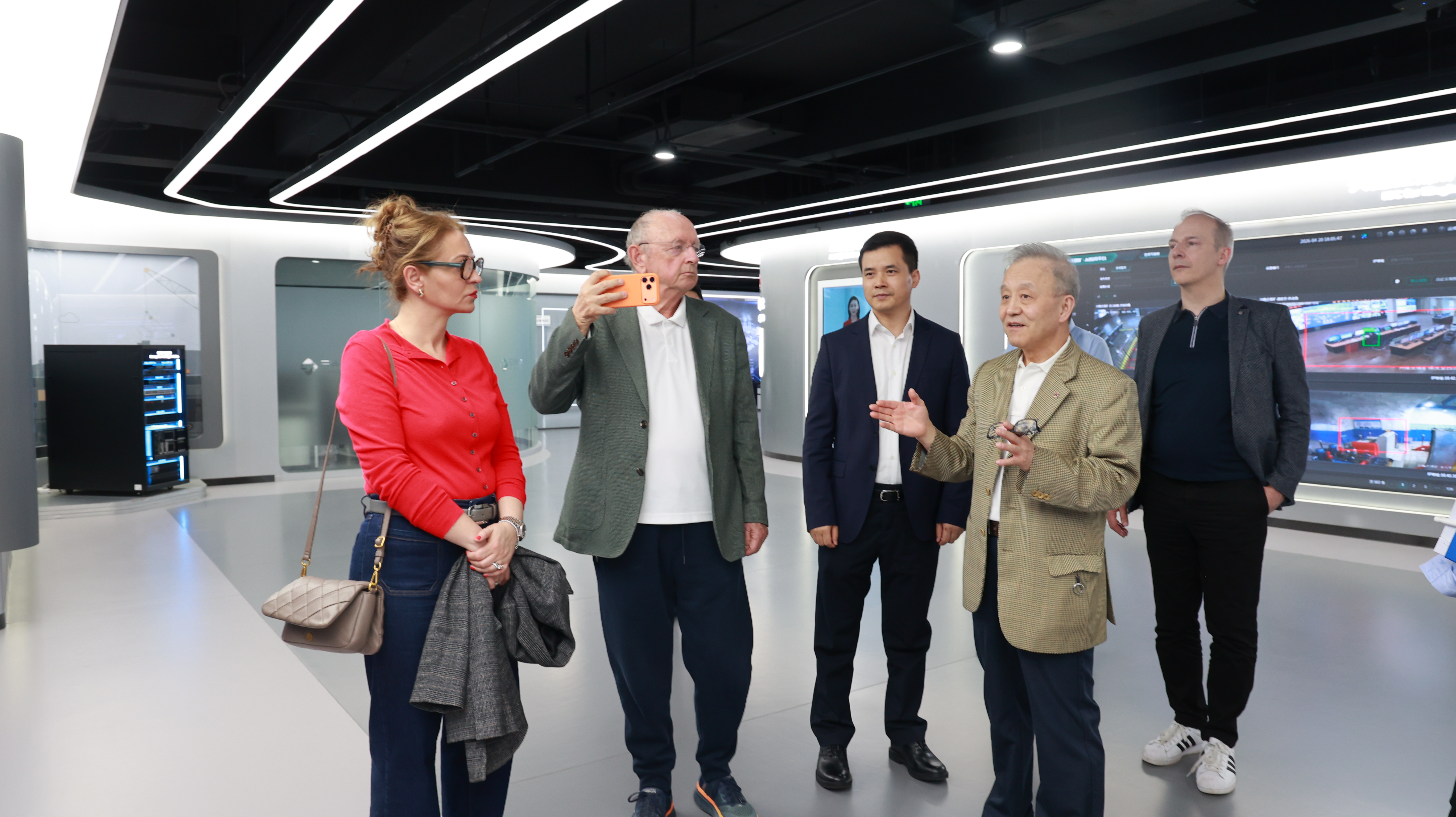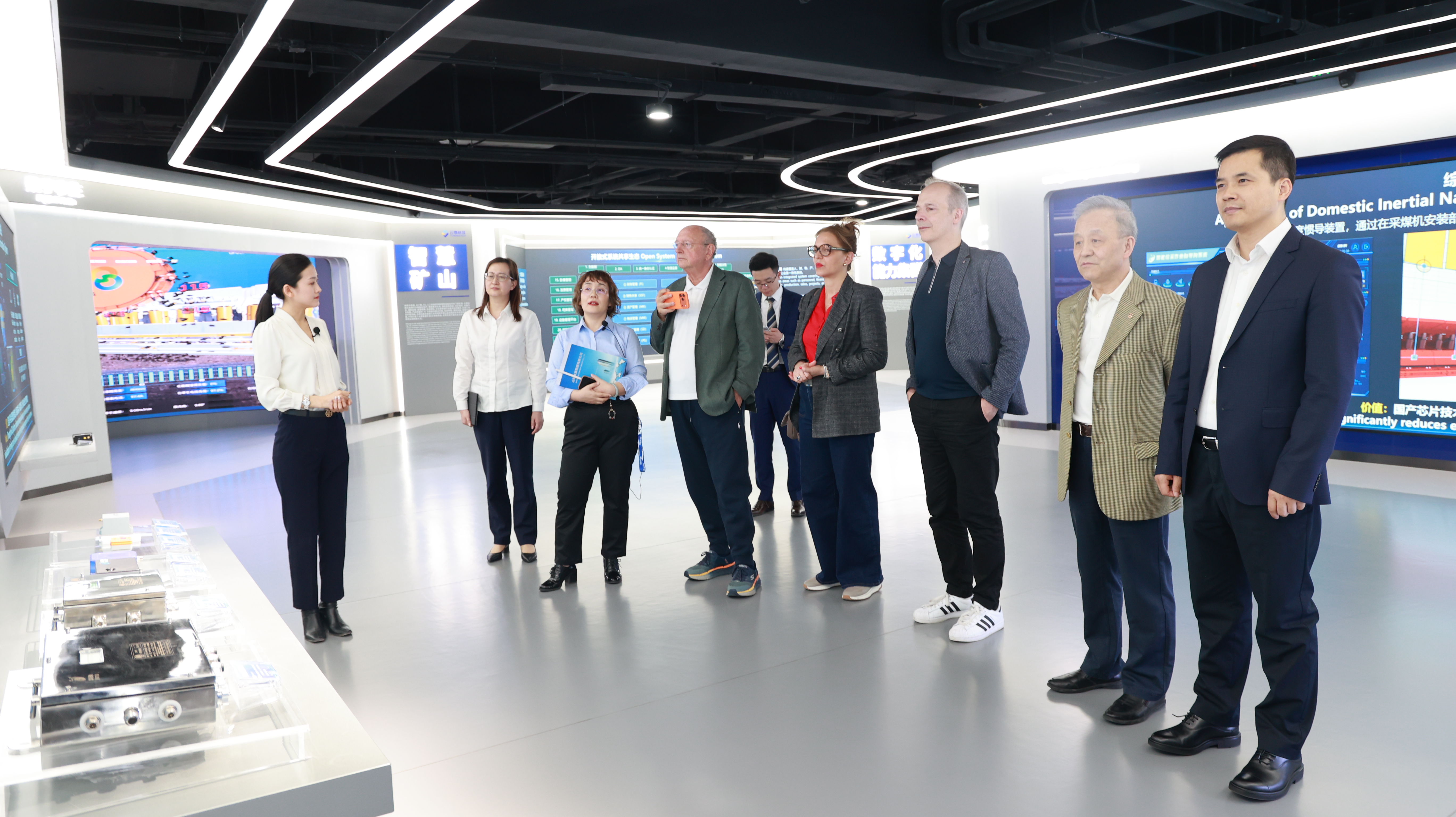 考察团先后参观云鼎科技数智展厅及华为-云鼎工业大模型全球样板点,详细了解公司在能源数字化、工业智能化领域的技术布局、产品体系与应用成果,并围绕人工智能、数字孪生、职工健康等技术应用开展深入交流,对云鼎科技的技术实力与产业落地成效给予高度评价。