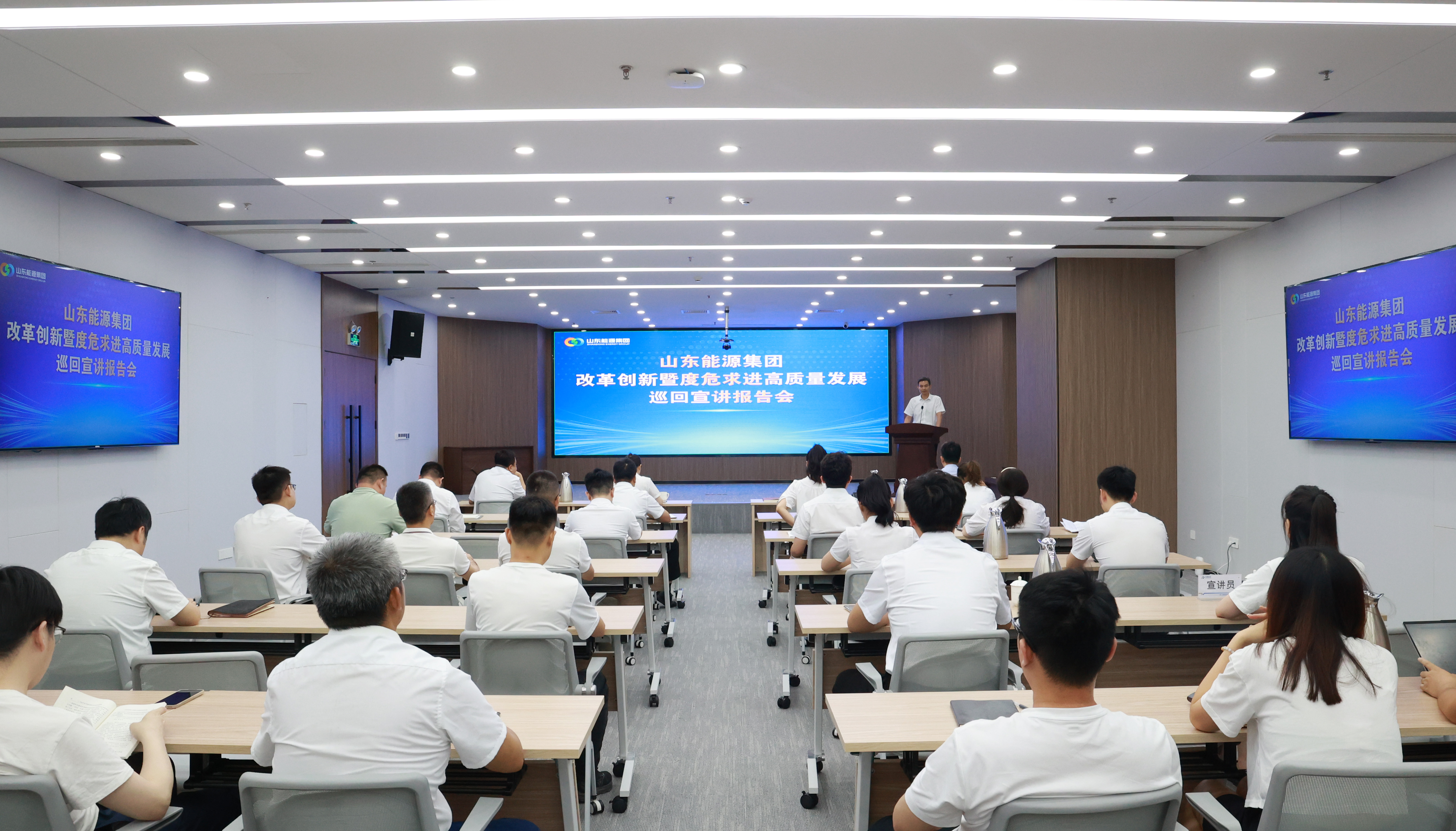 7月7日,山东能源集团改革创新暨度危求进高质量发展巡回宣讲走进云鼎科技。山东能源党群工作部有关领导作动员讲话,云鼎科技董事会秘书向瑛主持报告会。
