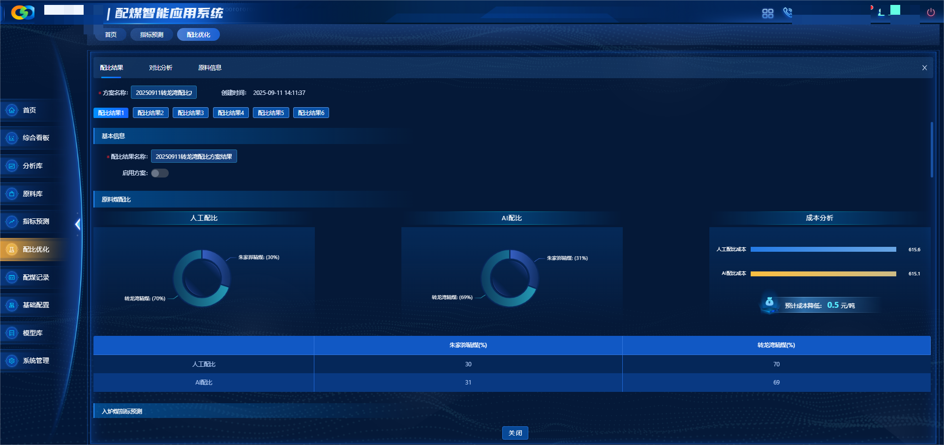 系统将关键化工机理公式作为物理约束嵌入网络损失函数,并构建先验知识作为神经网络决策边界,实现了数据拟合与机理守恒的有机统一,从而构建煤质指标预测与配比优化模型,生成全局最优配煤方案。